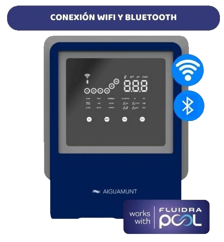 Clorador de alta eficiencia con control WiFi y Bluetooth. Monitoriza y ajusta los niveles de cloro desde tu smartphone en tiempo real.